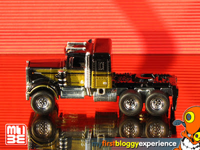 This rig is a reproduction of the one featured in the movie saga Smokey And The Bandit, driven by "Snowman", albeit the paint job in the original one was a very dark brown, not black and it claims to be a ’75 Kenworth W900 A (L), when the actual truck was a ’72 - ’73 model; Hot Wheels has not been accurate in terms of licensing, but there were not noticeable changes between those years so I guess it’s fine in this case.