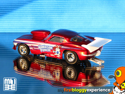 El trabajo de pintura fue hecho en rojo candy y luce fabuloso, lujoso, complementado por una decoración simple pero agradable presentando el logo de Hawaiian Punch, hecha con tampos, como debe ser, en blanco y azul, sobre los paneles laterales, más un logo Big Time diminuto en plateado, en la parte trasera y detalles adicionales pintados para los bómperes frontal y trasero, el chasis también recibió pintura plateada.